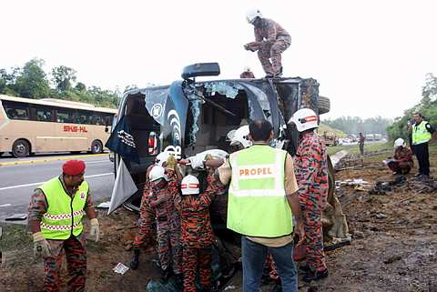 Kemalangan bas mini dan trak ragut enam nyawa di Perancis Orang ramai sedang menenangkan sesama sendiri di lokasi nahas di Rochefort Perancis. Seorang daripada mangsa yang terselamat dalam kemalangan bas pekerja yang mengorbankan 12 nyawa berhampiran Kompleks MASkargo di Sepang Ahad lepas mendakwa bas berkenaan berlumba ketika kemalangan. Ada antara mangsa sempat berenang untuk menyelamatkan diri dan kemalangan.
